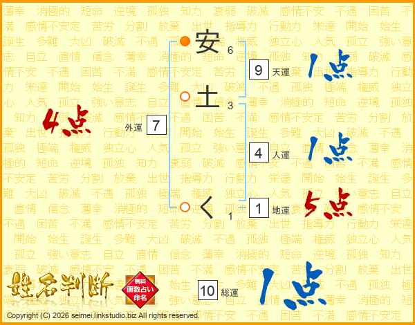 安土くさんの人運は4画の1点
