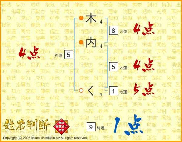 木内くさんの総運は9画の1点