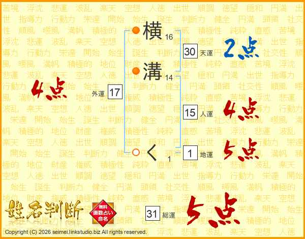 横溝くさんの総運は31画の5点!