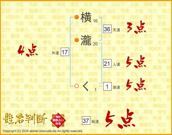 横瀧くさんの総運は37画の5点!