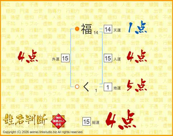 福くさんの総運は15画の4点!
