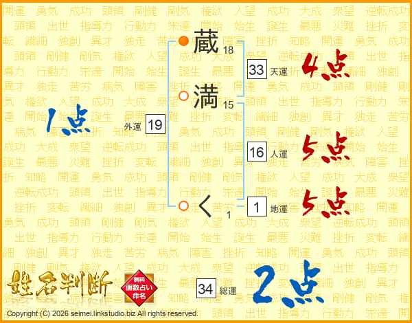 蔵満くさんの総運は34画の2点!