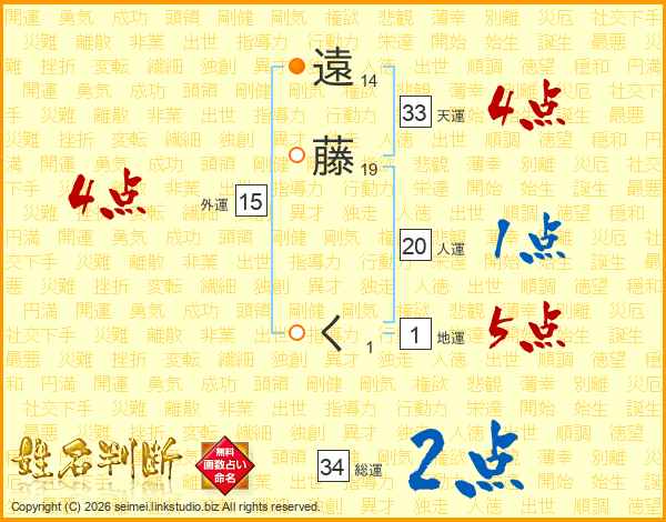 遠藤くさんの天運は33画の4点