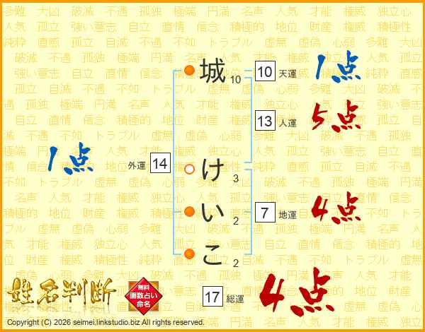 城けいこさんの総運は17画の4点!