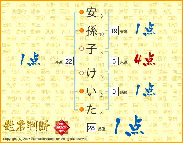 安孫子けいたさんの総運は28画の1点!
