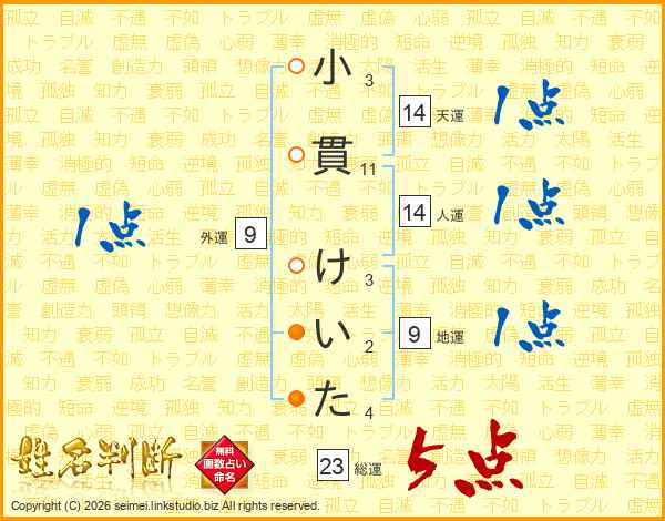小貫けいたさんの総運は23画の5点!