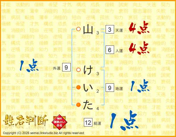 山けいたさんの総運は12画の1点!