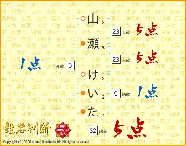 山瀬けいたさんの総運は32画の5点!