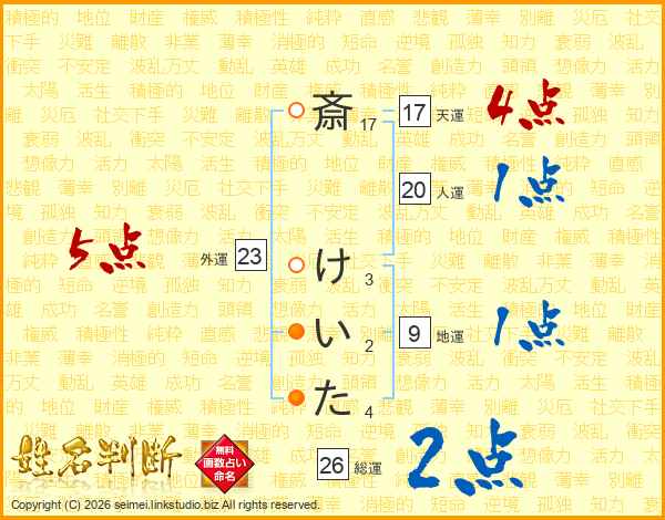 斎けいたさんの総運は26画の2点!
