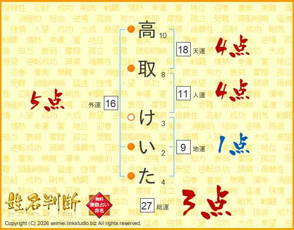 高取けいたさんの総運は27画の3点!