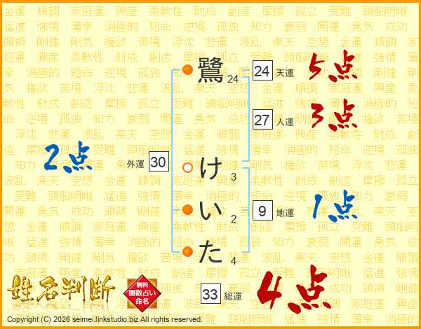 鷺けいたさんの総運は33画の4点!