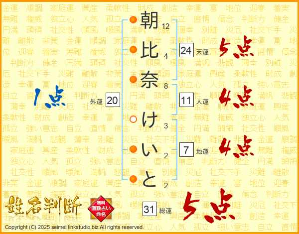 朝比奈けいとさんの総運は31画の5点!
