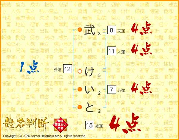 武けいとさんの総運は15画の4点!