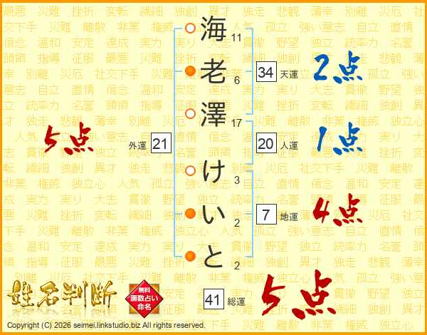 海老澤けいとさんの外運は21画の5点!