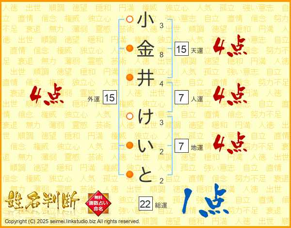 小金井けいとさんの総運は22画の1点!