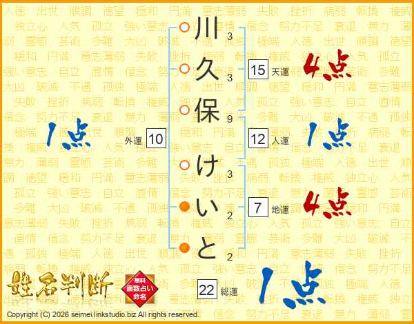 川久保けいとさんの総運は22画の1点!