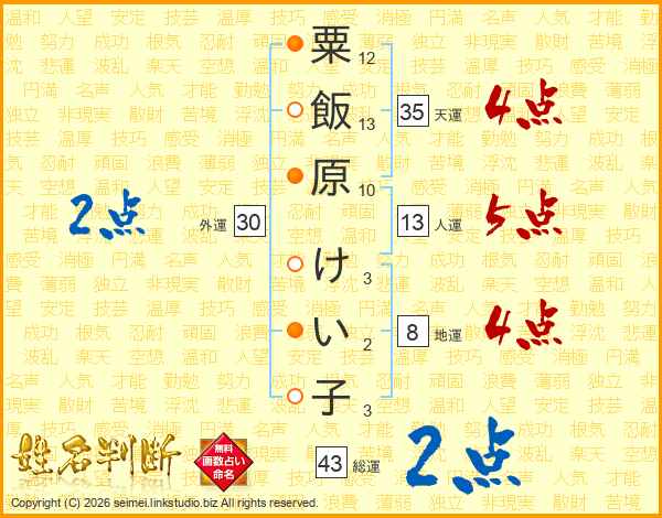 粟飯原けい子さんの総運は43画の2点!