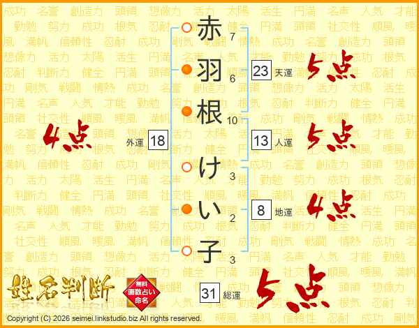 赤羽根けい子さんの天運は23画の5点!