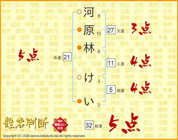 河原林けいさんの総運は32画の5点!