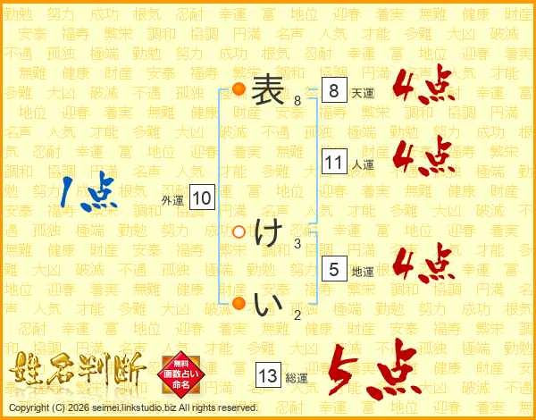 表けいさんの総運は13画の5点!