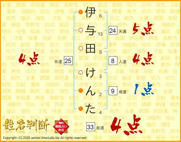伊与田けんたさんの総運は33画の4点!