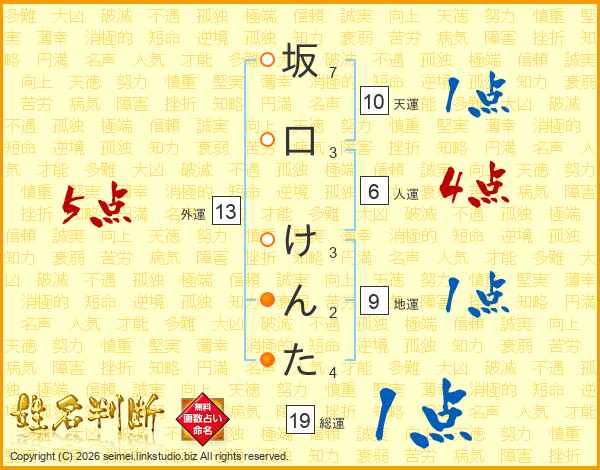 坂口けんたさんの総運は19画の1点!