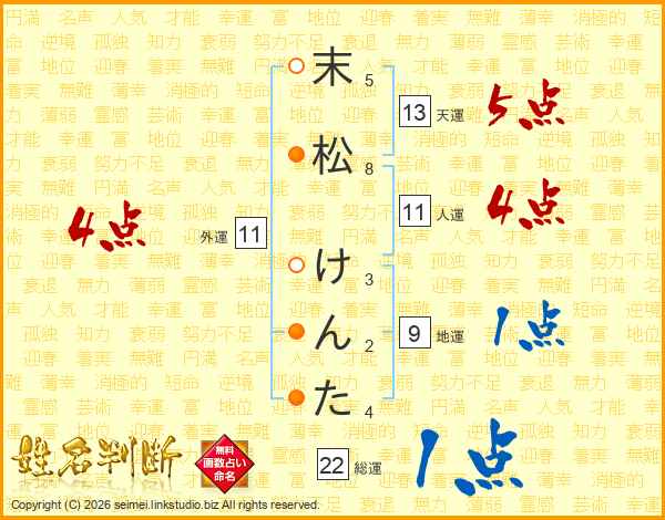 末松けんたさんの総運は22画の1点!