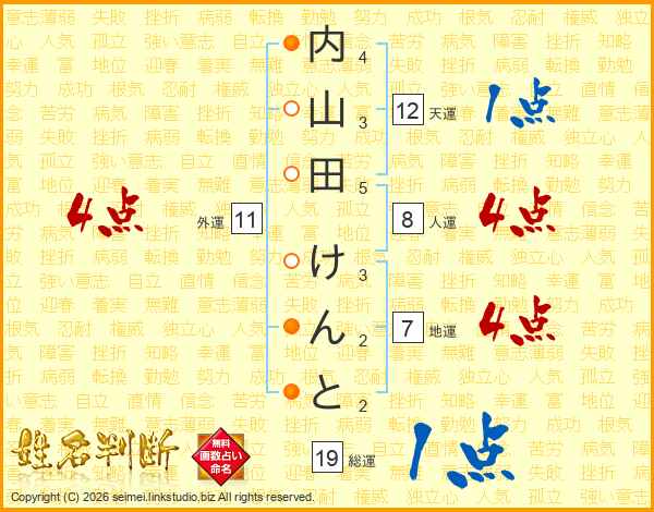 内山田けんとさんの総運は19画の1点!