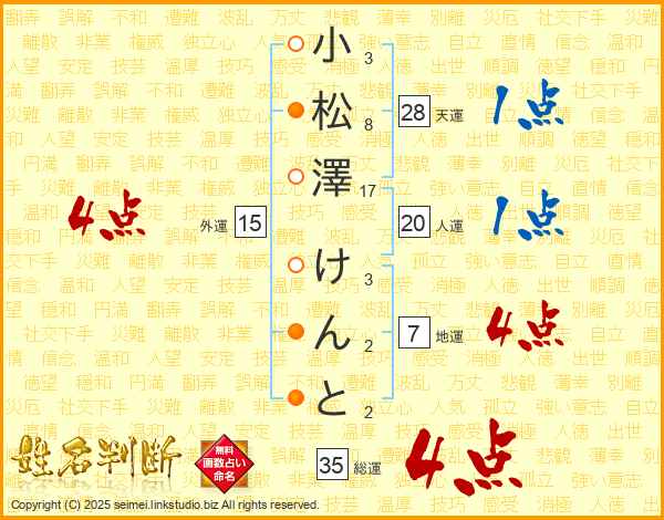 小(3画)松(8画)澤(17画) け(3画)ん(2画)と(2画)
