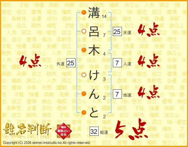 溝呂木けんとさんの総運は32画の5点!