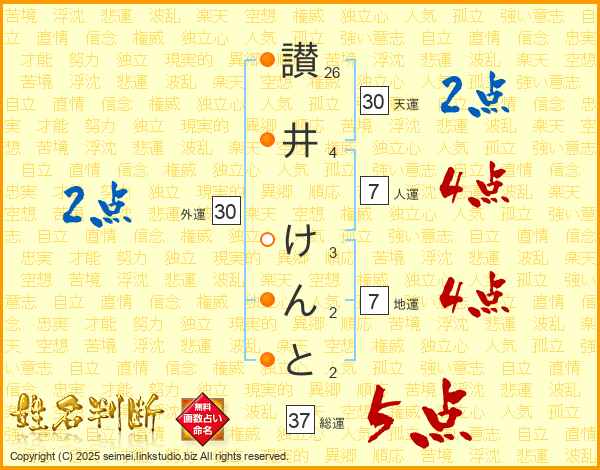 讃(26画)井(4画) け(3画)ん(2画)と(2画)