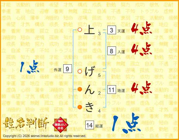 上げんきさんの総運は14画の1点!
