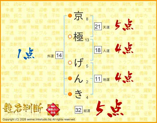 京極げんきさんの天運は21画の5点!