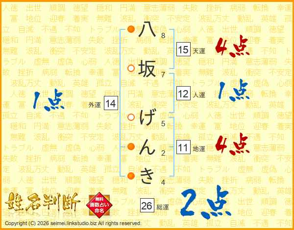 八坂げんきさんの総運は26画の2点!