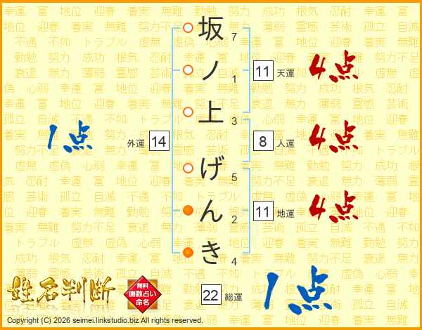 坂ノ上げんきさんの天運は11画の4点!