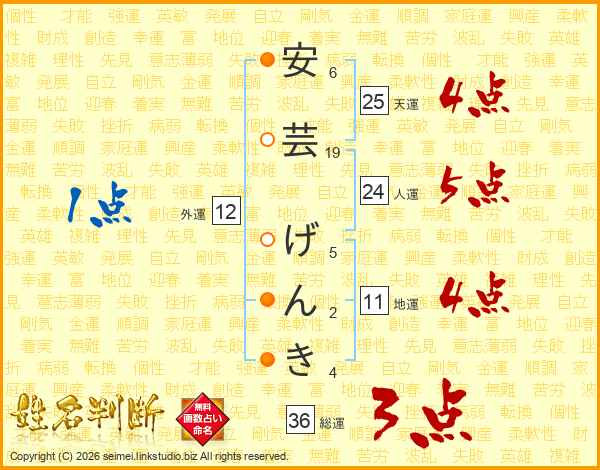 安芸げんきさんの総運は36画の3点!