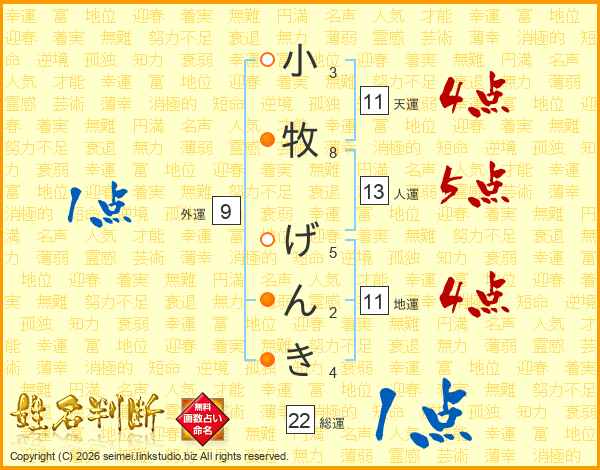 小牧げんきさんの総運は22画の1点!