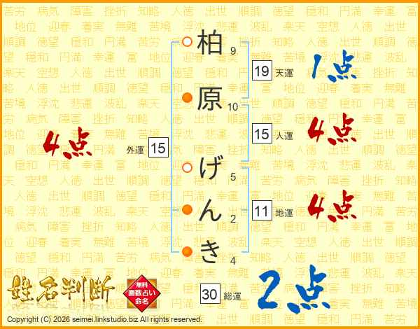 柏原げんきさんの人運は15画の4点!