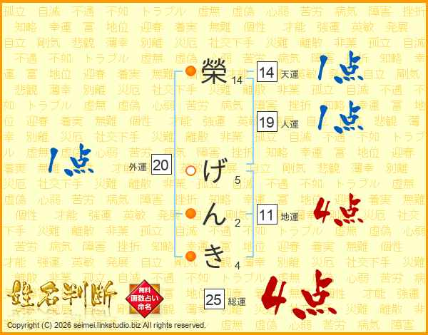 榮げんきさんの総運は25画の4点!