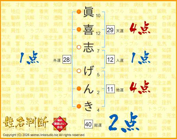 眞喜志げんきさんの総運は40画の2点!