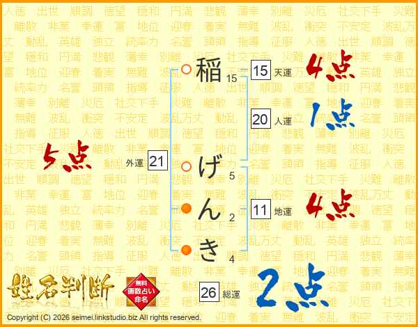 稲げんきさんの総運は26画の2点!