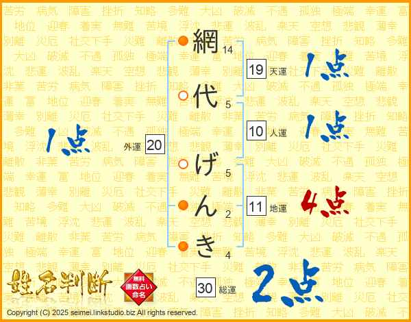 網代げんきさんの総運は30画の2点!