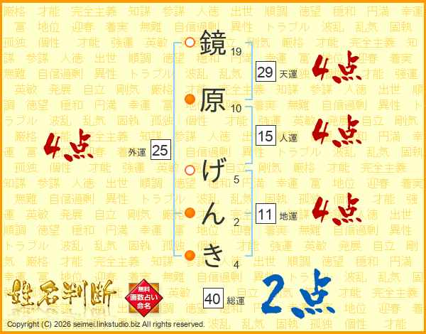 鏡原げんきさんの総運は40画の2点!