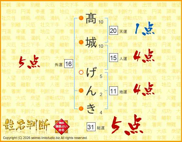 髙城げんきさんの総運は31画の5点!