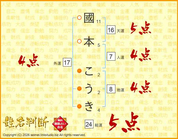 國(11画)本(5画) こ(2画)う(2画)き(4画)