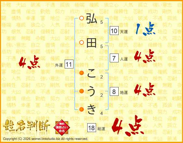弘田こうきさんの総運は18画の4点!