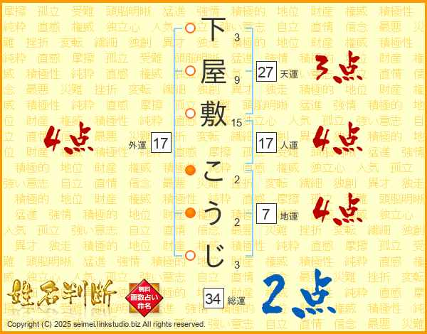 下屋敷こうじさんの外運は17画の4点!