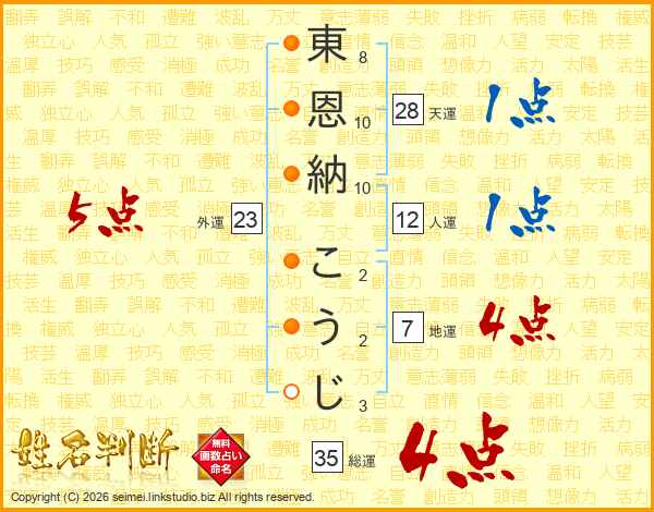東恩納こうじさんの総運は35画の4点!