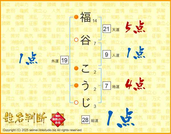 福谷こうじさんの天運は21画の5点!