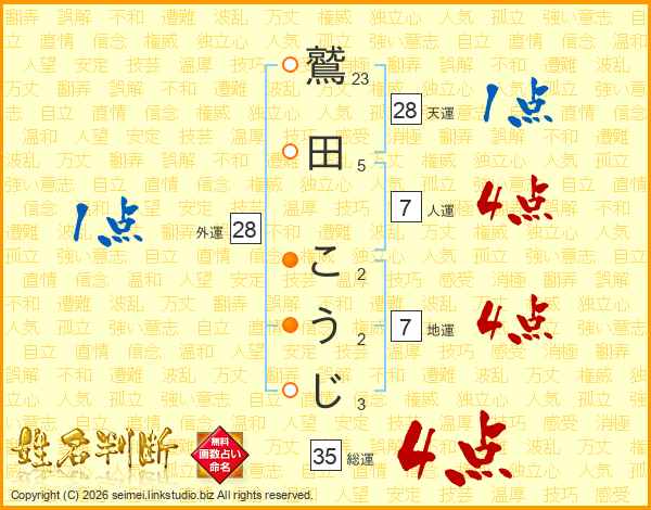鷲田こうじさんの総運は35画の4点!